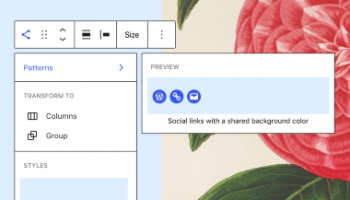 Starting in this release the Pattern Transformations tool will suggest block patterns based on the block you are using. Right now, you can give it a try in the Query Block and Social Icon Block. As more patterns are added, you will be able to get inspiration for how to style your site without ever leaving the editor!